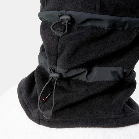 South Hood je vyrobena z polartec® fleece v roztažitelném, žebrově pleteném provedení. Je podrobně popsán s nastavitelnými stahovacími šňůrkami, krátkým vrcholem na obočí a tkaným čtvercovým štítkem.